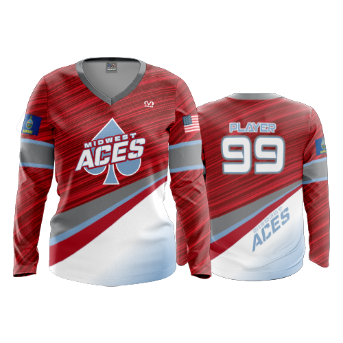 355 FD Womens V-Neck Longsleeve MIDWEST-ACES-RED