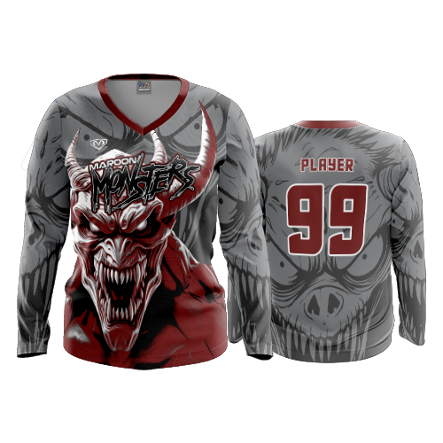 4994 WOMENS V NECK LONGSLEEVE MAROON-MONSTERS-2