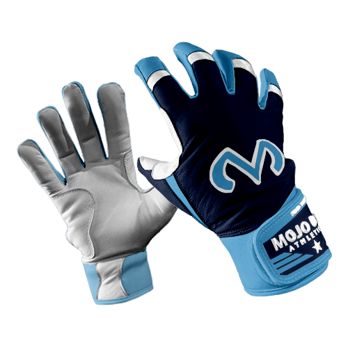 Mojo SLAMZ Batting Gloves Charcoal / Black / White Great quality fully dye sublimated batting glove. Made with special 50% stretch poly / 50% neoprene material. 3-D molded logos, Velcro wrist strap, un-tackified rubber palm grips. Amazing comfort. Standard sizing.