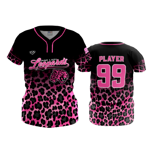 5010 WOMENS 2-BUTTON SCOOP NECK LYCRA MESH PINK-LADY-LEOPARDS-1