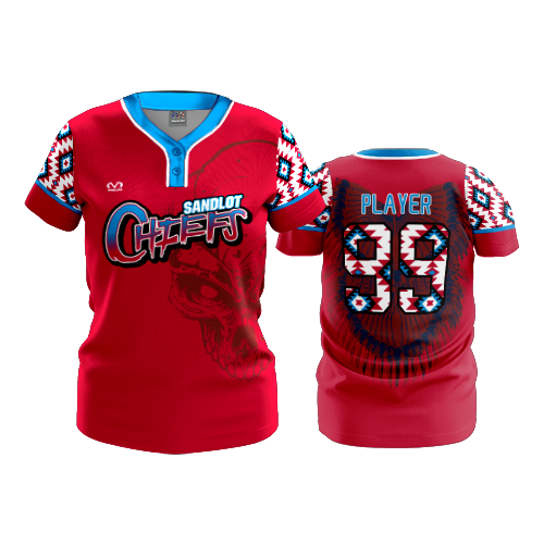 WOMENS 2-BUTTON SCOOP NECK LYCRA MESH SANDLOT-CHIEFS-2