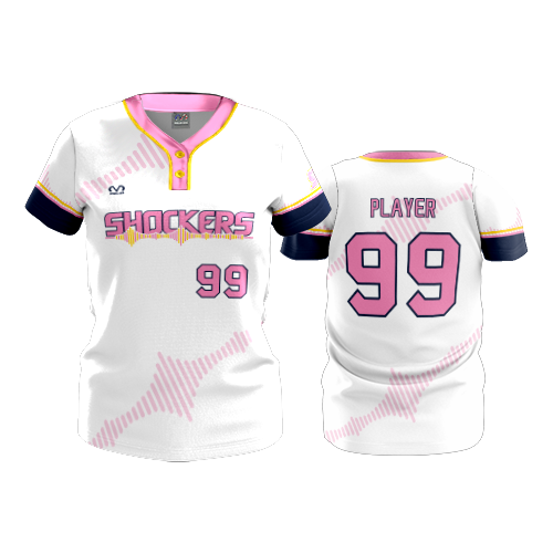 WOMENS 2-BUTTON SCOOP NECK LYCRA MESH SHOCKERS-PINK